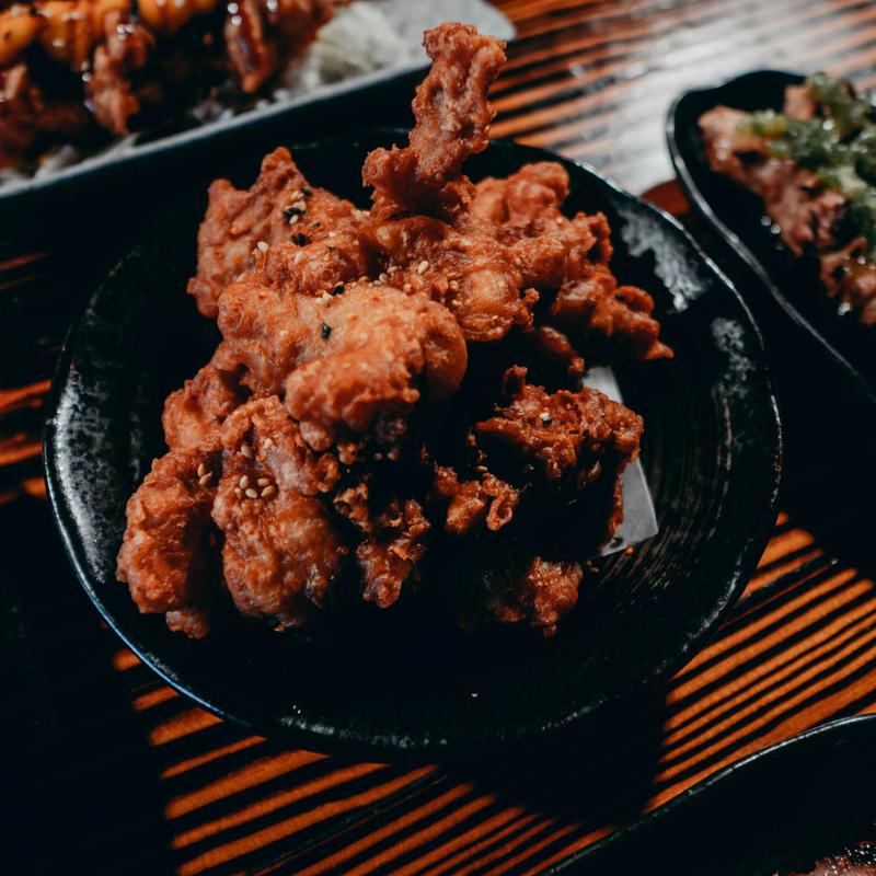 Fried battered octopus topped with mayo and okonomiyaki sauce.